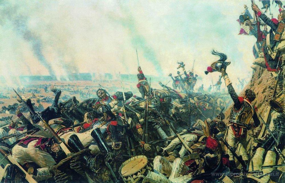 Ti offriamo una riproduzione artigianale su tela dell'opera famosa 'La fine della battaglia di Borodino' di Vasily Vereshchagin, dal Museo delle Riproduzioni.