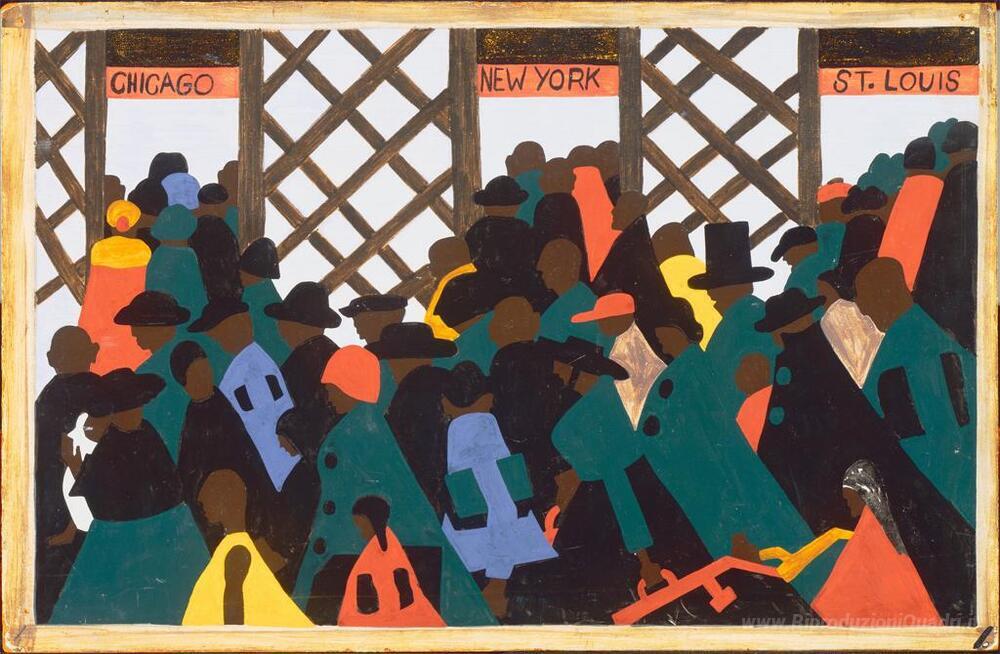 Benvenuti nel nostro esclusivo spazio dedicato ai dipinti a olio italiani, un viaggio affascinante tra arte e cultura. Oggi presentiamo La Migrazione del negro, Pannello 1 di Jacob Lawrence, un’opera vibrante e ricca di storia, che racconta il percorso migratorio delle comunità afroamericane nel XX secolo. Lawrence, celebre per il suo stile distintivo, utilizza colori audaci e forme stilizzate, dando vita a un racconto visivo potentemente evocativo.