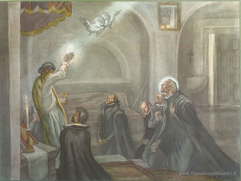 Ti offriamo una riproduzione artigianale su tela dell'opera famosa 'La vita di S. Ignazio di Loyola. Piastra 5. Ignazio ei primi com' di Carlos Saenz de Tejada, dal Museo delle Riproduzioni.