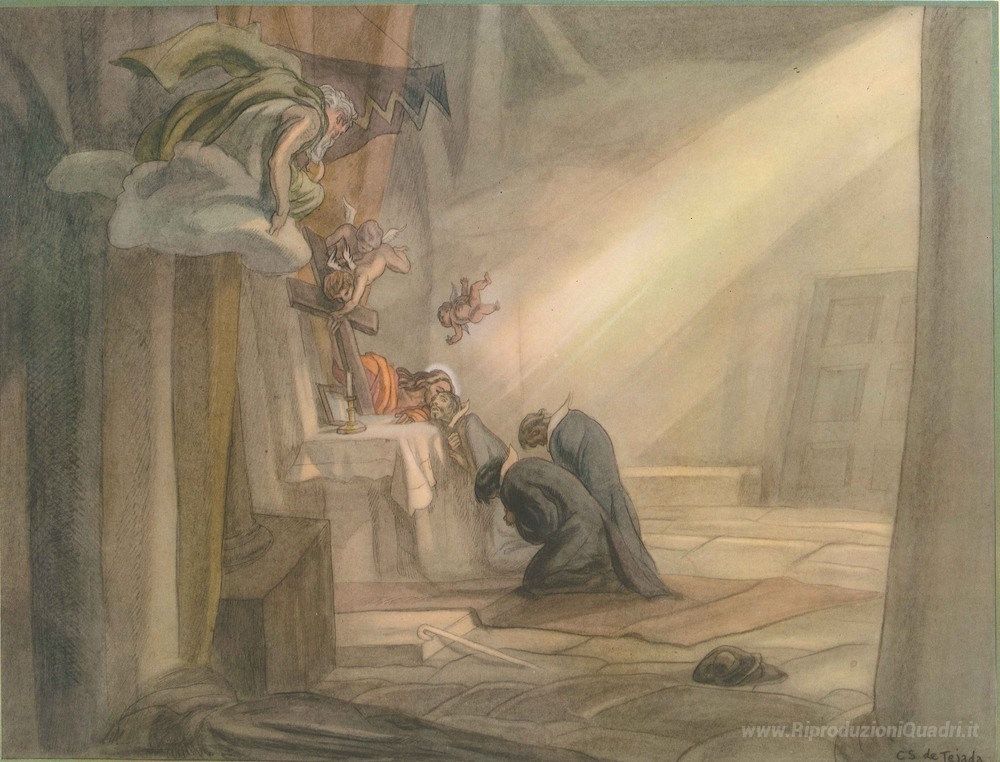 Ti offriamo una riproduzione artigianale su tela dell'opera famosa 'La vita di S. Ignazio di Loyola. Piatto 6. La visione a La Stort' di Carlos Saenz de Tejada, dal Museo delle Riproduzioni.