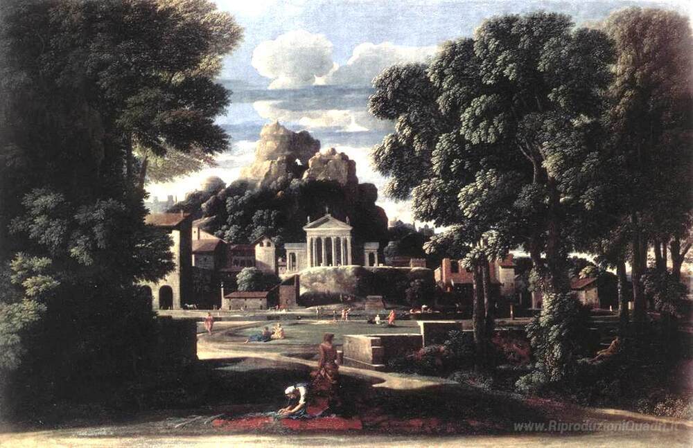 Ti offriamo una riproduzione artigianale su tela dell'opera famosa 'Le ceneri di Focione raccolti dal suo Widow' di Nicolas Poussin, dal Museo delle Riproduzioni.