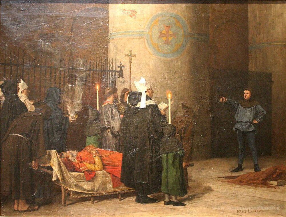 Ti offriamo una riproduzione artigianale su tela dell'opera famosa 'Les funérailles de Guillaume le Conquérant' di Jean-Paul Laurens, dal Museo delle Riproduzioni.