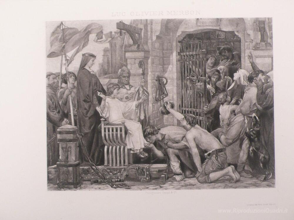 Ti offriamo una riproduzione artigianale su tela dell'opera famosa 'Luigi IX apre le carceri di Francia' di Luc-Olivier Merson, dal Museo delle Riproduzioni.