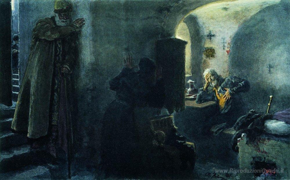 Ti offriamo una riproduzione artigianale su tela dell'opera famosa 'Monk Filaret Imprigionato nel Monastero Antonievo-Siyskiy' di Ilya Repin, dal Museo delle Riproduzioni.