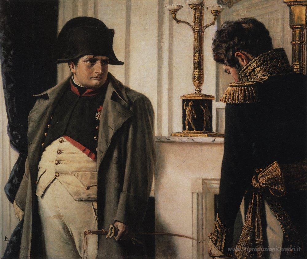 Ti offriamo una riproduzione artigianale su tela dell'opera famosa 'Napoleone e generale Lauriston (pace a tutti i costi)' di Vasily Vereshchagin, dal Museo delle Riproduzioni.