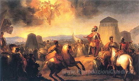 Ti offriamo una riproduzione artigianale su tela dell'opera famosa 'O Milagre de Ourique' di Domingos Sequeira, dal Museo delle Riproduzioni.