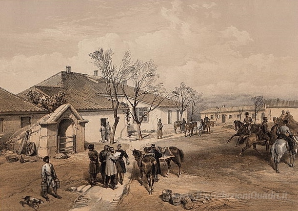 Ti offriamo una riproduzione artigianale su tela dell'opera famosa 'Quartier di Lord Raglan a Khutor-Karagatch' di William Simpson, dal Museo delle Riproduzioni.