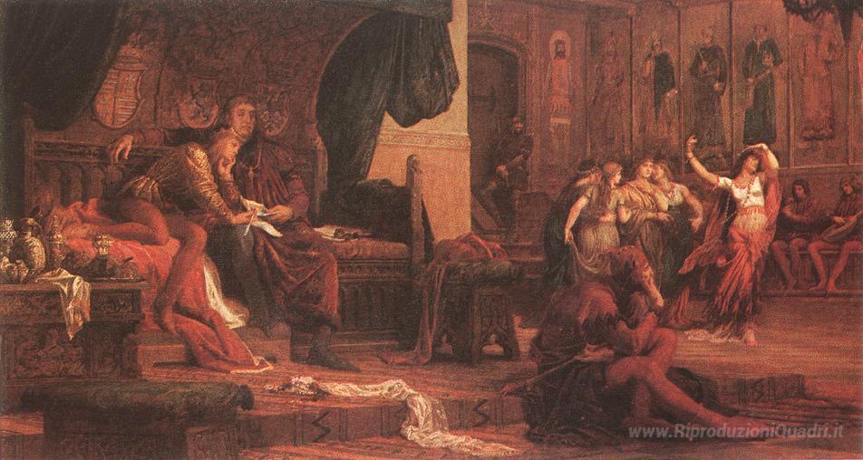 Ti offriamo una riproduzione artigianale su tela dell'opera famosa 'Re László V e Ulrik Cillei' di Bertalan Szekely, dal Museo delle Riproduzioni.