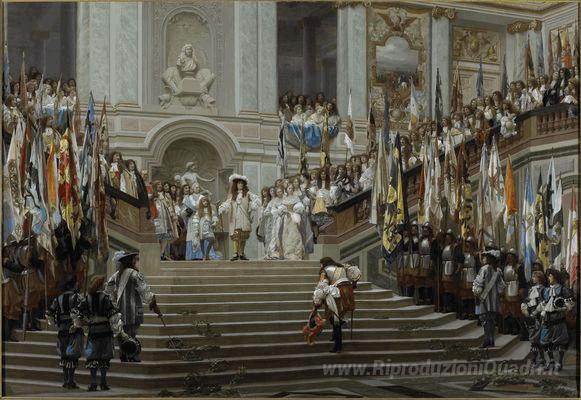 Ti offriamo una riproduzione artigianale su tela dell'opera famosa 'Ricezione di Le Grand Condé a Versailles' di Jean-Leon Gerome, dal Museo delle Riproduzioni.