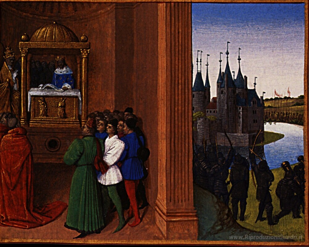 Questo dipinto rappresenta un perfetto esempio del suo stile distintivo, caratterizzato da dettagli ricchi e colori vibranti che catturano l'essenza dei soggetti. La scena ritratta da Fouquet non solo arricchisce visivamente lo spazio, ma crea anche un'atmosfera di contemplazione e meraviglia. Scegliere un'opera come Roberto il Pio File di un'antifona significa arricchire il proprio ambiente con un pezzo di storia artistica, capace di suscitare emozioni profonde e dialogare con chi lo osserva.