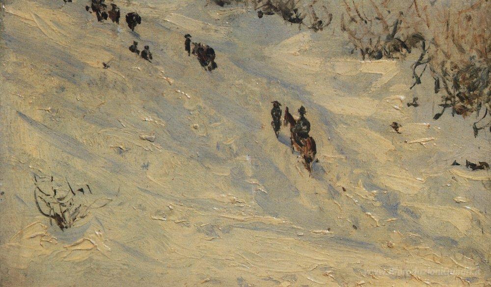 Ti offriamo una riproduzione artigianale su tela dell'opera famosa 'Spostamento di colonne di MD Skobelev attraverso i Balcani' di Vasily Vereshchagin, dal Museo delle Riproduzioni.