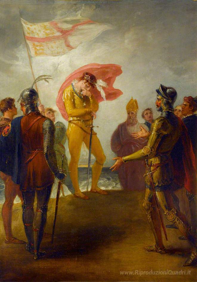 Ti offriamo una riproduzione artigianale su tela dell'opera famosa 'The Landing di Riccardo II a Milford Haven' di William Hamilton, dal Museo delle Riproduzioni.