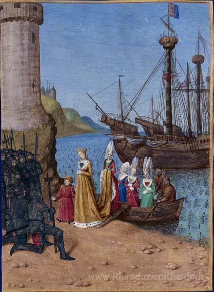 Ti offriamo una riproduzione artigianale su tela dell'opera famosa 'Tornato in Inghilterra Isabella di Francia' di Jean Fouquet, dal Museo delle Riproduzioni.