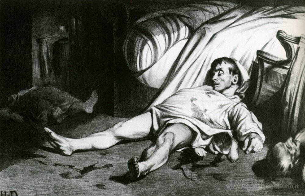 Ti offriamo una riproduzione artigianale su tela dell'opera famosa 'Transnonain Via' di Honore Daumier, dal Museo delle Riproduzioni.