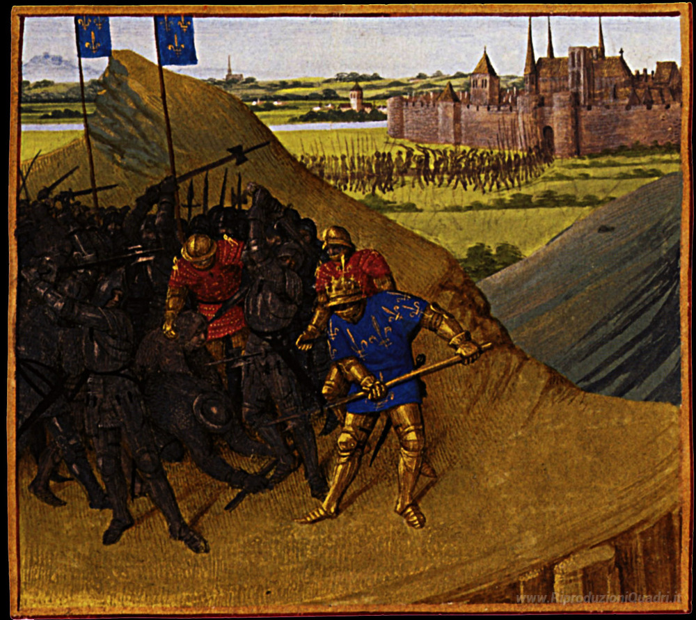 Ti offriamo una riproduzione artigianale su tela dell'opera famosa 'Vittoria di Enrico I il suo fratello Roberto' di Jean Fouquet, dal Museo delle Riproduzioni.
