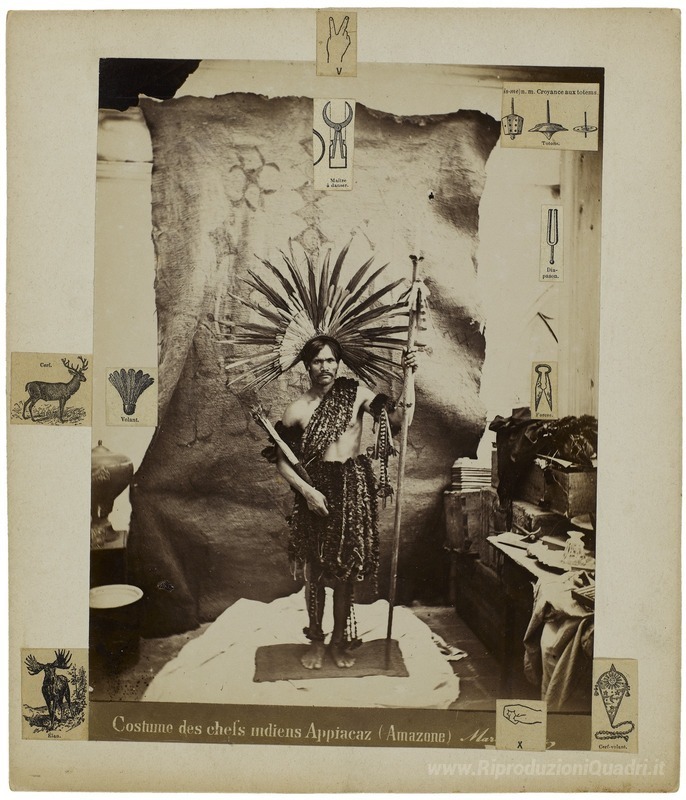 Ti offriamo una riproduzione artigianale su tela dell'opera famosa 'Costume des chefs indiens Appiacaz (Amazone)' di Gherasim Luca, dal Museo delle Riproduzioni.