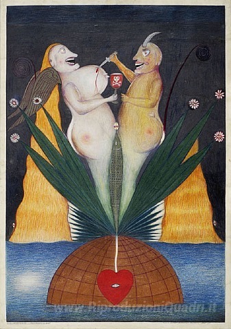 Ti offriamo una riproduzione artigianale su tela dell'opera famosa 'Il moralistica Luna Dualismo' di Friedrich Schroder-Sonnenstern, dal Museo delle Riproduzioni.