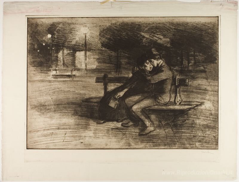 Ti offriamo una riproduzione artigianale su tela dell'opera famosa 'Amoureux Sur Un Banc' di Theophile Steinlen, dal Museo delle Riproduzioni.