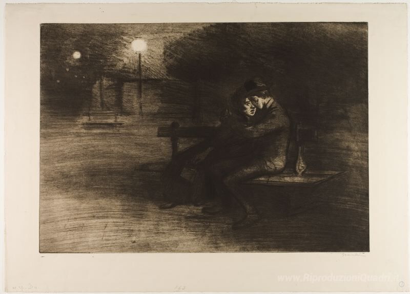 Ti offriamo una riproduzione artigianale su tela dell'opera famosa 'Amoureux Sur Un Banc' di Theophile Steinlen, dal Museo delle Riproduzioni.