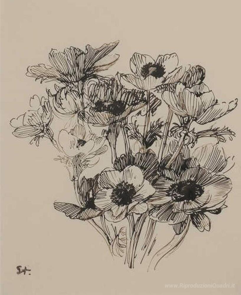 Ti offriamo una riproduzione artigianale su tela dell'opera famosa 'Bouquet de Fleurs' di Theophile Steinlen, dal Museo delle Riproduzioni.
