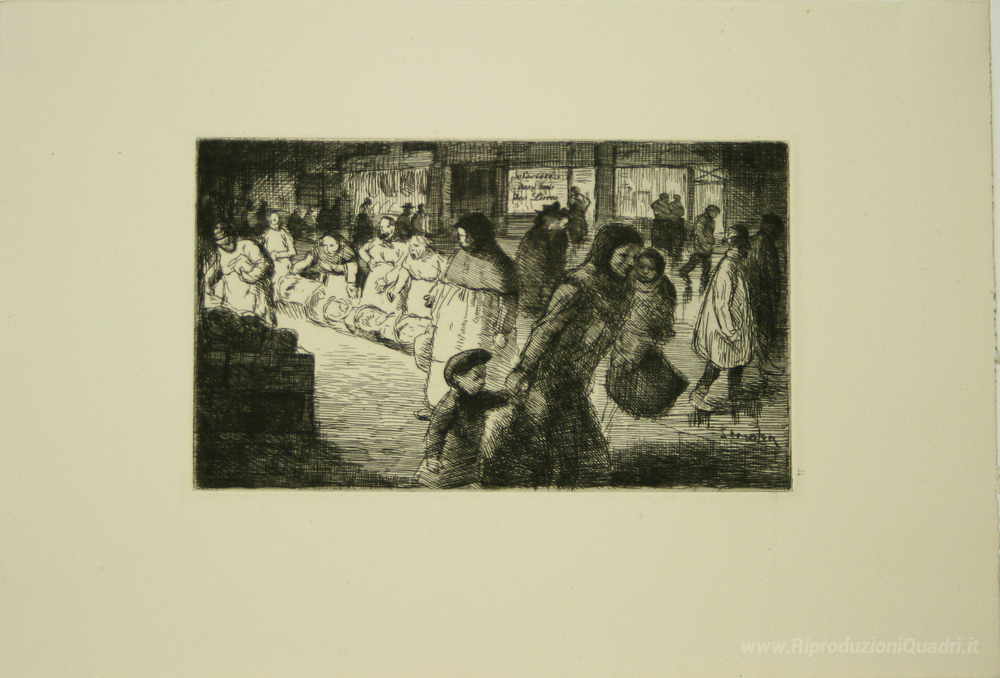 Ti offriamo una riproduzione artigianale su tela dell'opera famosa 'Bout de Rue Le Soir' di Theophile Steinlen, dal Museo delle Riproduzioni.