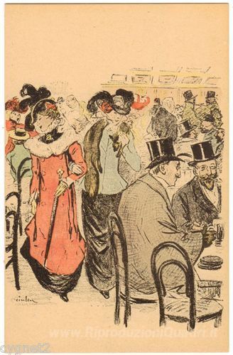 Ti offriamo una riproduzione artigianale su tela dell'opera famosa 'Cafe Scene' di Theophile Steinlen, dal Museo delle Riproduzioni.