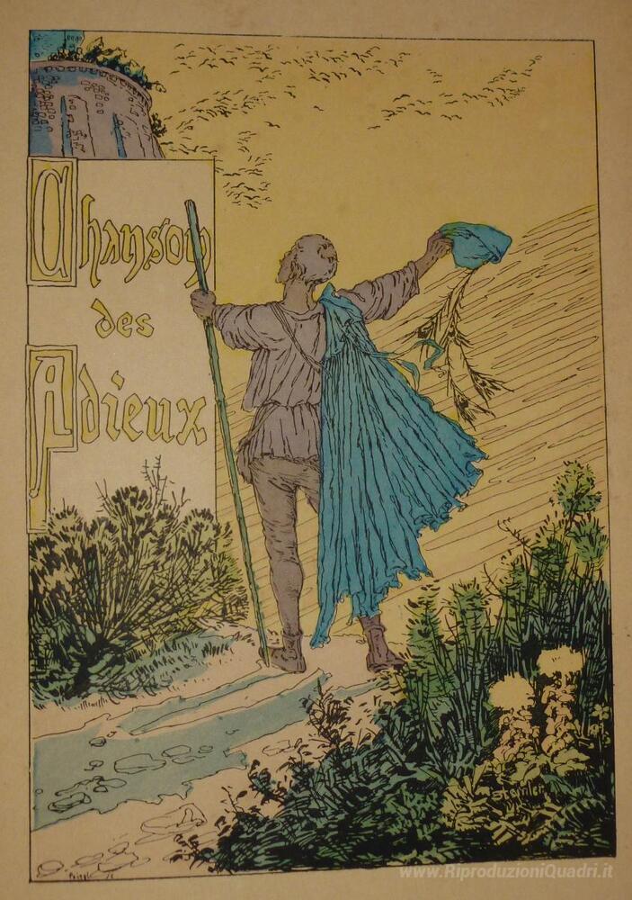 Ti offriamo una riproduzione artigianale su tela dell'opera famosa 'Chanson des Adieux' di Theophile Steinlen, dal Museo delle Riproduzioni.