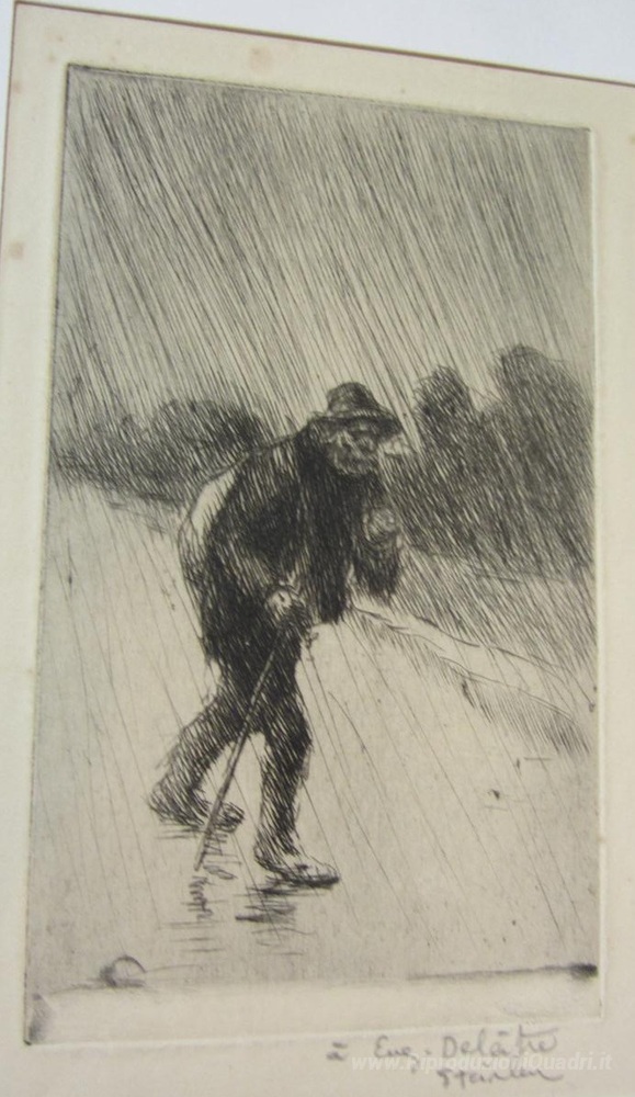Ti offriamo una riproduzione artigianale su tela dell'opera famosa 'Chemineau Sous La Pluie' di Theophile Steinlen, dal Museo delle Riproduzioni.