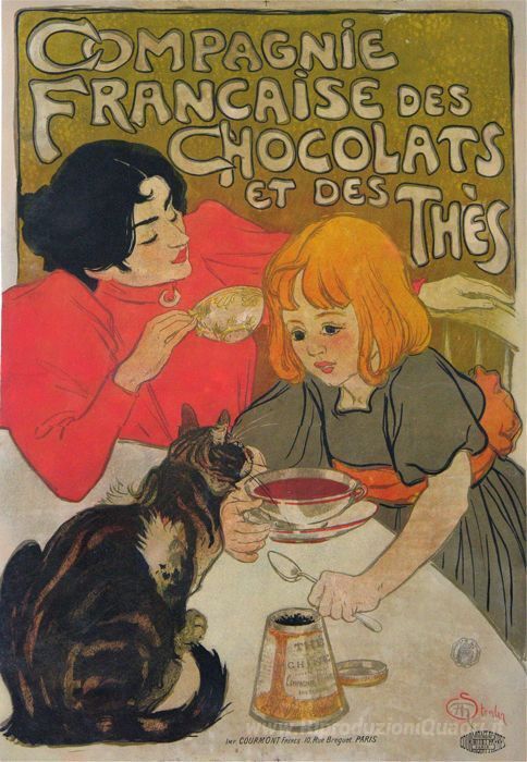 Ti offriamo una riproduzione artigianale su tela dell'opera famosa 'Compagnia francese Cioccolato et des Thes' di Theophile Steinlen, dal Museo delle Riproduzioni.