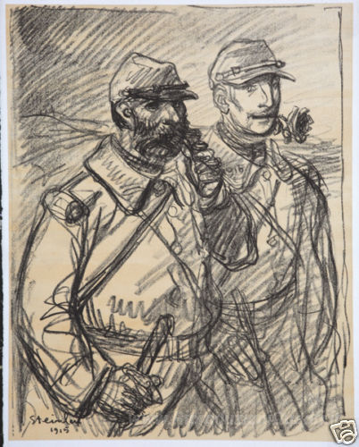 Ti offriamo una riproduzione artigianale su tela dell'opera famosa 'Croquis - Deux Poilus' di Theophile Steinlen, dal Museo delle Riproduzioni.