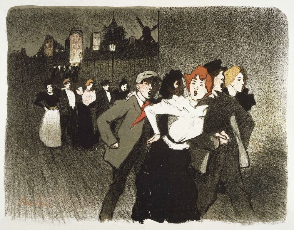 Ti offriamo una riproduzione artigianale su tela dell'opera famosa 'Dans La Rue' di Theophile Steinlen, dal Museo delle Riproduzioni.