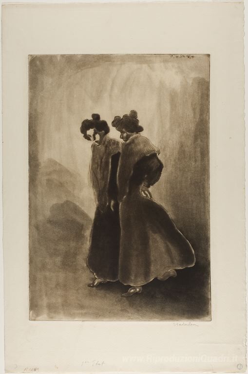 Ti offriamo una riproduzione artigianale su tela dell'opera famosa 'Deux Femmes' di Theophile Steinlen, dal Museo delle Riproduzioni.