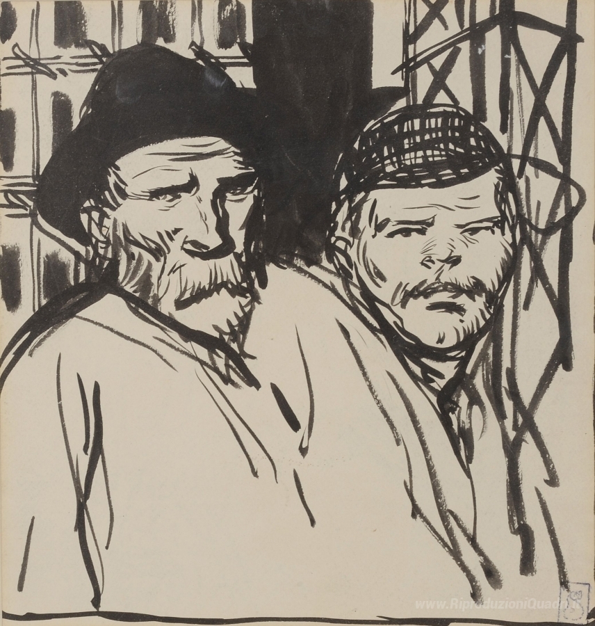 Ti offriamo una riproduzione artigianale su tela dell'opera famosa 'Deux Ouvriers' di Theophile Steinlen, dal Museo delle Riproduzioni.