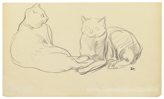 Ti offriamo una riproduzione artigianale su tela dell'opera famosa 'Due gatti' di Theophile Steinlen, dal Museo delle Riproduzioni.