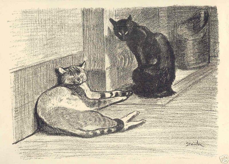 Ti offriamo una riproduzione artigianale su tela dell'opera famosa 'Due gatti' di Theophile Steinlen, dal Museo delle Riproduzioni.