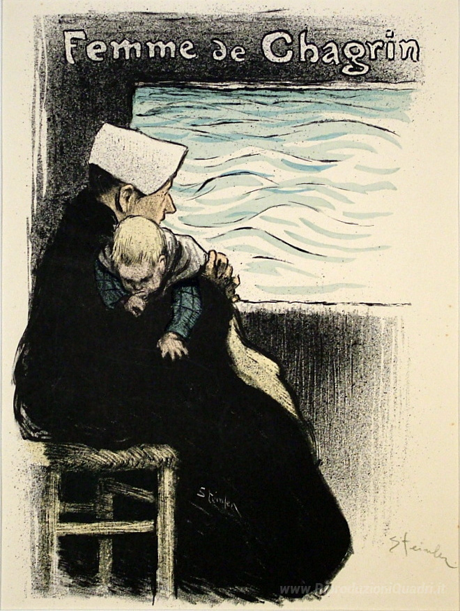 Ti offriamo una riproduzione artigianale su tela dell'opera famosa 'Femme de Chagrin' di Theophile Steinlen, dal Museo delle Riproduzioni.