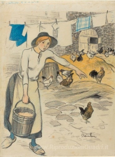 Ti offriamo una riproduzione artigianale su tela dell'opera famosa 'Fille de Ferme' di Theophile Steinlen, dal Museo delle Riproduzioni.