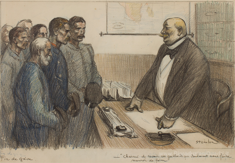 Ti offriamo una riproduzione artigianale su tela dell'opera famosa 'Fin de Greve' di Theophile Steinlen, dal Museo delle Riproduzioni.