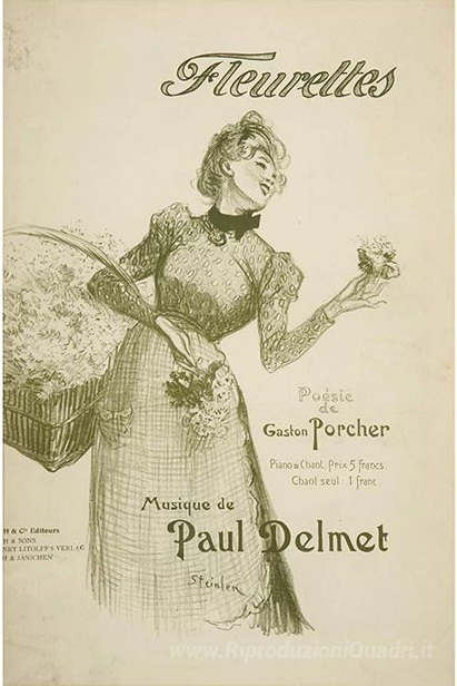 Ti offriamo una riproduzione artigianale su tela dell'opera famosa 'Fleurettes' di Theophile Steinlen, dal Museo delle Riproduzioni.
