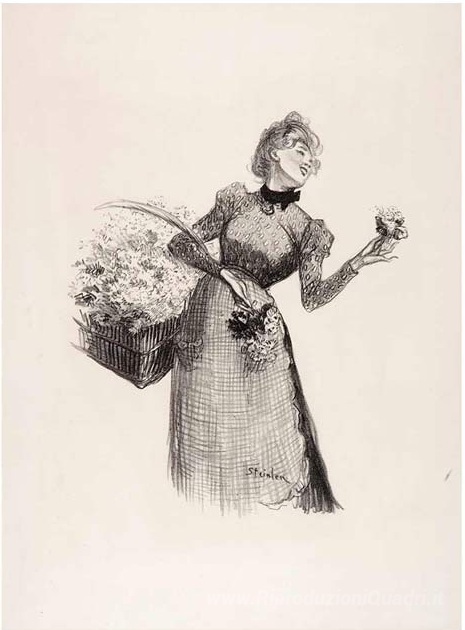 Ti offriamo una riproduzione artigianale su tela dell'opera famosa 'Flower Girl' di Theophile Steinlen, dal Museo delle Riproduzioni.
