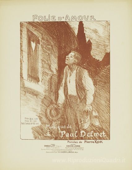Ti offriamo una riproduzione artigianale su tela dell'opera famosa 'Folie D'Amour' di Theophile Steinlen, dal Museo delle Riproduzioni.