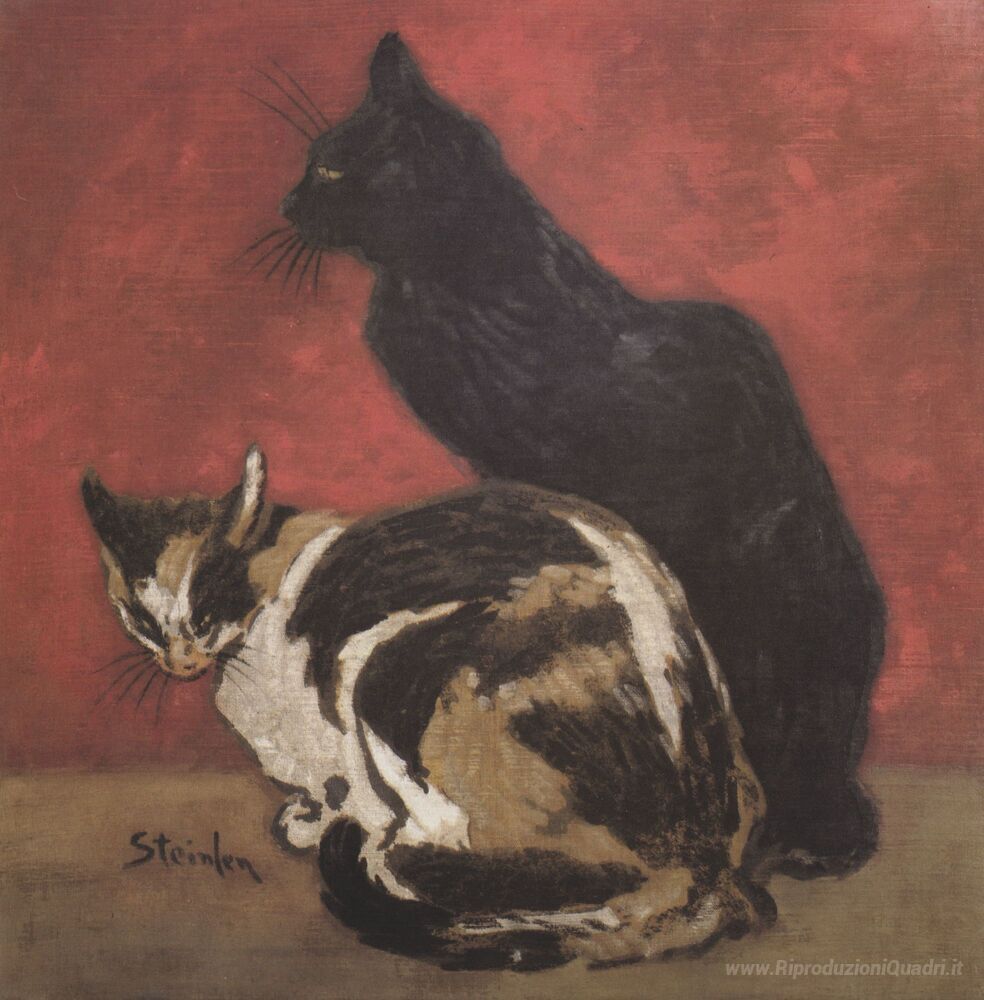 Ti offriamo una riproduzione artigianale su tela dell'opera famosa 'Gatti' di Theophile Steinlen, dal Museo delle Riproduzioni.