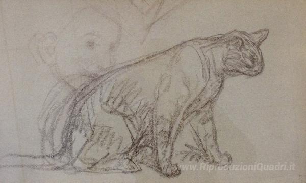 Ti offriamo una riproduzione artigianale su tela dell'opera famosa 'Gatto abbozzo' di Theophile Steinlen, dal Museo delle Riproduzioni.