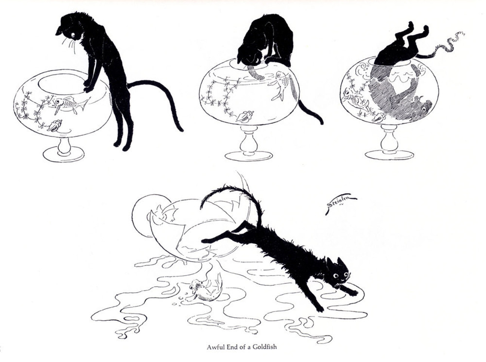 Ti offriamo una riproduzione artigianale su tela dell'opera famosa 'Gatto e pesci rossi' di Theophile Steinlen, dal Museo delle Riproduzioni.