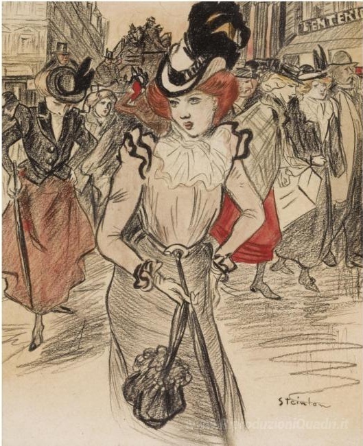 Benvenuti nel nostro angolo dedicato all'arte e all'eleganza. Oggi vi presentiamo l'incantevole dipinto a olio Hue Cocotte, realizzato dall'illustre artista francese Theophile Steinlen. Maestro della fine dell'Ottocento, Steinlen si distingue per la sua capacità di catturare l'essenza della vita parigina, con un occhio attento ai dettagli e una profondità emotiva che traspare in ogni sua opera.