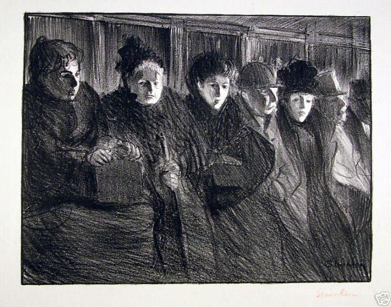 Ti offriamo una riproduzione artigianale su tela dell'opera famosa 'Interieur tram' di Theophile Steinlen, dal Museo delle Riproduzioni.