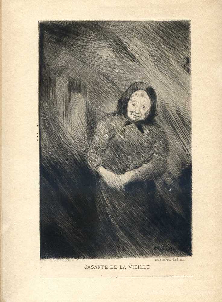 Ti offriamo una riproduzione artigianale su tela dell'opera famosa 'Jasante de la Vielle' di Theophile Steinlen, dal Museo delle Riproduzioni.