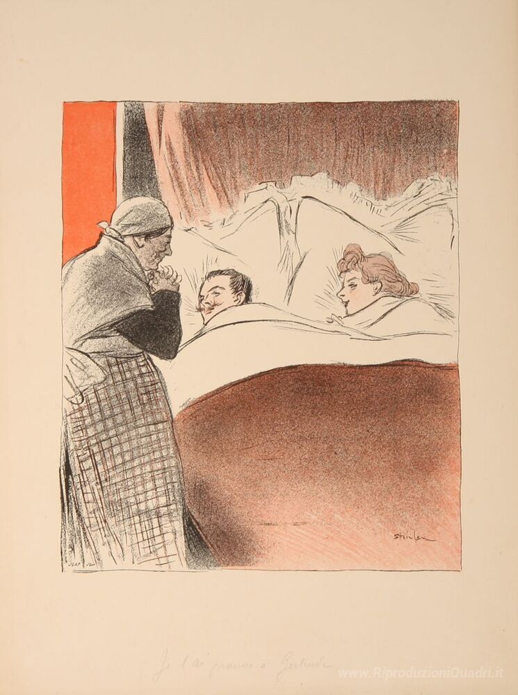 Le tecniche pittoriche di Steinlen, come l'uso sapiente delle luci e delle ombre, conferiscono al dipinto una dimensione quasi tridimensionale, permettendo a ciascun osservatore di immergersi e trascorrere un momento di riflessione. Ideale per arricchire qualsiasi ambiente della tua casa, Je l'ai Promis un Gertrude non è solo un'opera d'arte, ma un elemento d'arredo che esalta lo spazio, creando un'atmosfera calda e accogliente, perfetta per ogni collezionista d'arte e amante del design italiano.