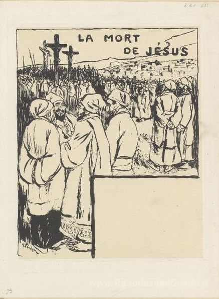 Ti offriamo una riproduzione artigianale su tela dell'opera famosa 'La Mort de Jesus' di Theophile Steinlen, dal Museo delle Riproduzioni.
