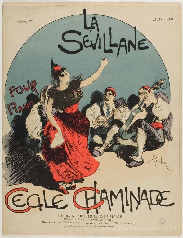 Ti offriamo una riproduzione artigianale su tela dell'opera famosa 'La Sevillane' di Theophile Steinlen, dal Museo delle Riproduzioni.